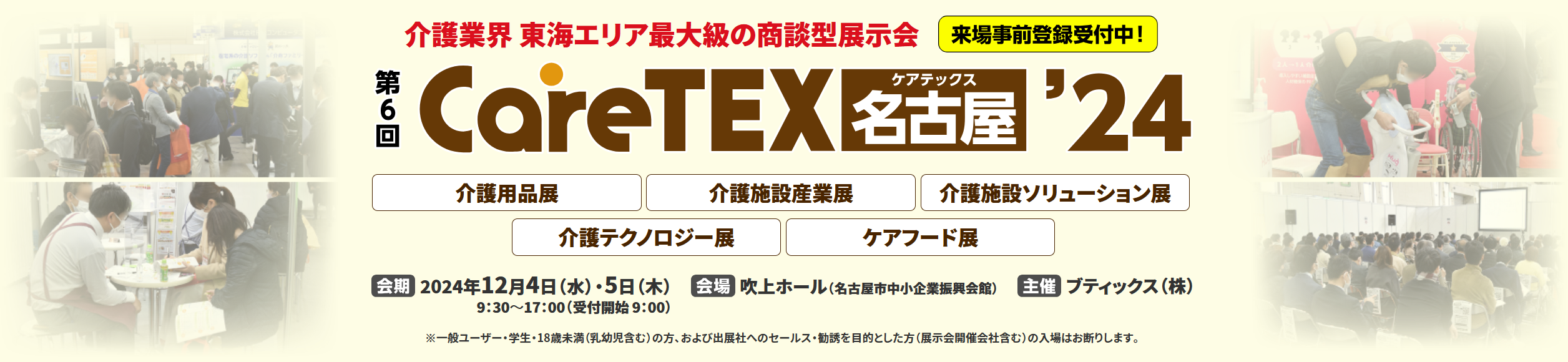 HOME > 展示会「CareTEX名古屋’24」に出展します!(小間番号3-51)