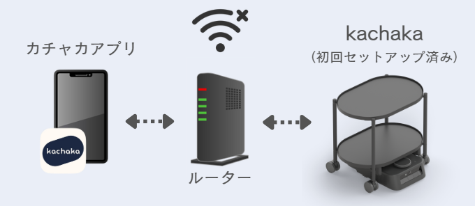 初回セットアップが完了したカチャカであれば、外部のインターネットにアクセスできないネットワーク環境(オフラインのローカルWi-Fi)であっても、ルーターを経由してスマートフォンアプリからカチャカを操作することが可能です。
