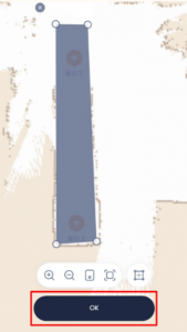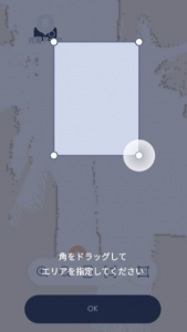 灰色の枠を「坂の傾斜部分」と「坂の入り口や出口の平坦なエリア(1.5m程)」が入るよう長めに囲い「OK」をタップします。