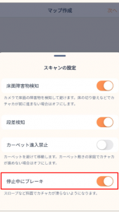 マップ作成時は、「停止中にブレーキ」機能を有効化し、坂エリアを走行してマッピングしてください。