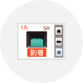 かごが自階に到着すると到着画面にかごが到着してから経過時間を表示。お料理が冷めないように、配慮した仕様です。