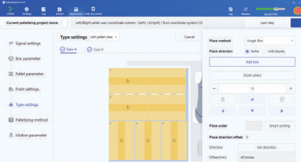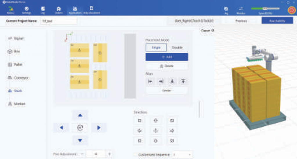 材料ボックスの積み順序と8種類のボックスの積み方向を設定でき、さまざまな積み方に対応できます。