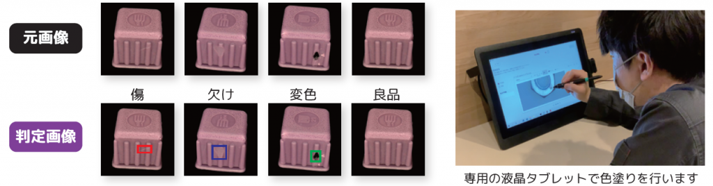 液晶タブレットで不良部分を簡単色塗り、ボタン一つで学習開始