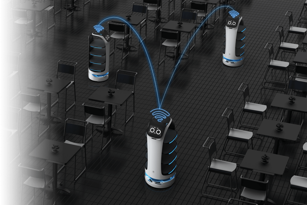 アドホックネットワーク通信を採用し、複数台でのロボットを運用した際に、各ロボットが同じネットワーク内の任意のロボットと直接通信することで、瞬時に計算して最適なルートを決定することが可能です。
