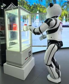 さらには、冷蔵ショーケースから缶飲料を取り出し、私に手渡してくれたのです。ショーケースを開ける瞬間、少し体がのけぞる動きも見られましたが、それでもバランスを崩すことなく立ち続けていました。